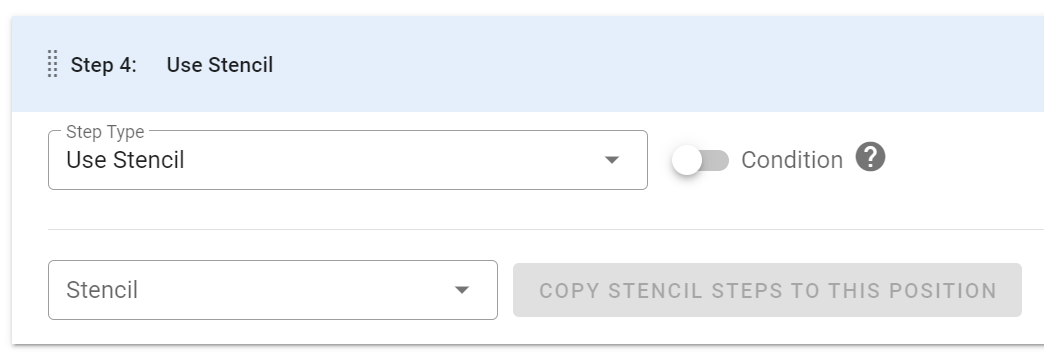 If the 'Copy Stencil to this position' is available, the steps of the stencil will be created here and the 'Use Stencil' step will vanish.