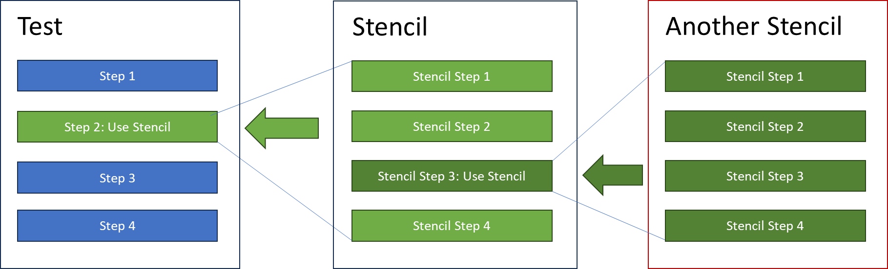 Integrating the stencil into a test will only use the steps in the STENCIL area.
